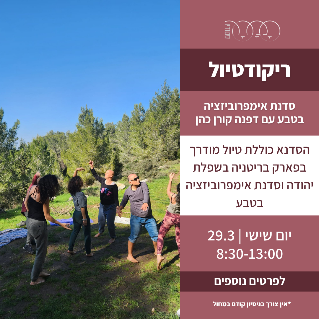 מזמינה אתכם לצאת איתי ל"טיולריקוד", סדנה שמשלבת טיול הליכה, הסברים על הנוף והצומח וסדנת אימפרוביזציה, כשהטבע משמש לנו השראה.